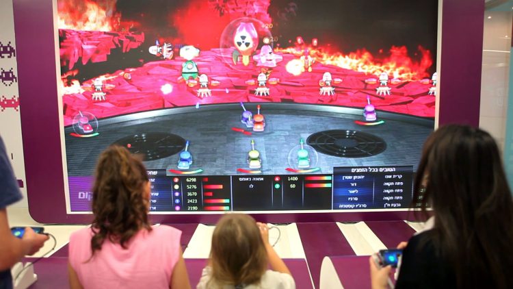 CrowdeeZ is a multi-player game, played over a large screen in a public place, indoors or outdoors. Any passer-by can easily join and play the game, using their own personal smartphone.