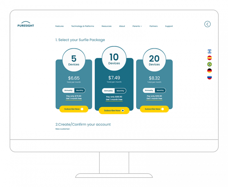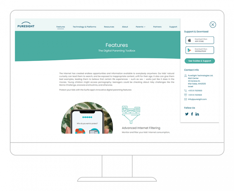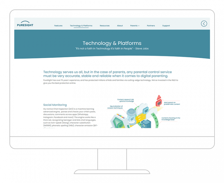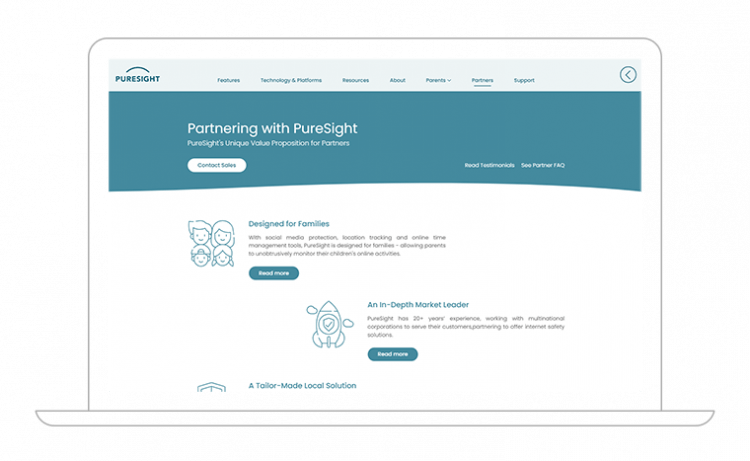 Design & development of a website for Puresight, an innovative parental control app company.